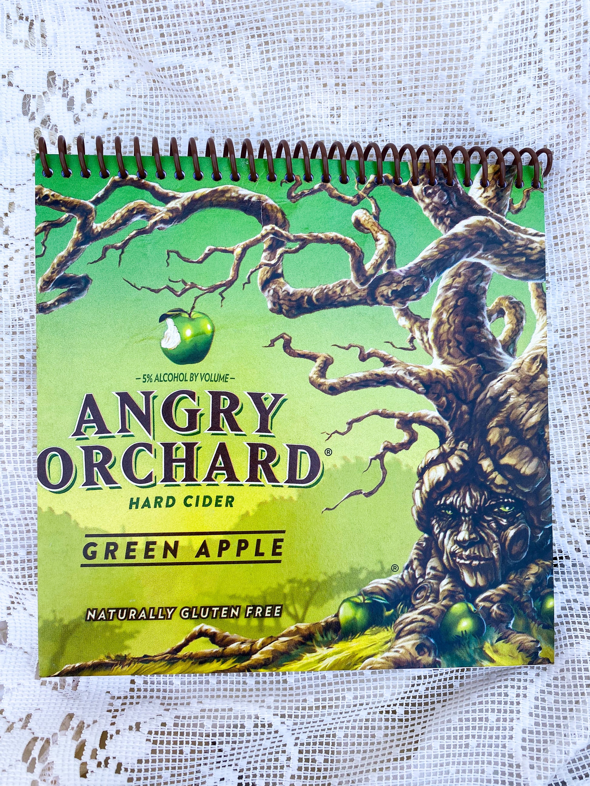 Angry Orchard Green Apple Recycled Beer Carton Notebook - Brown Spiral