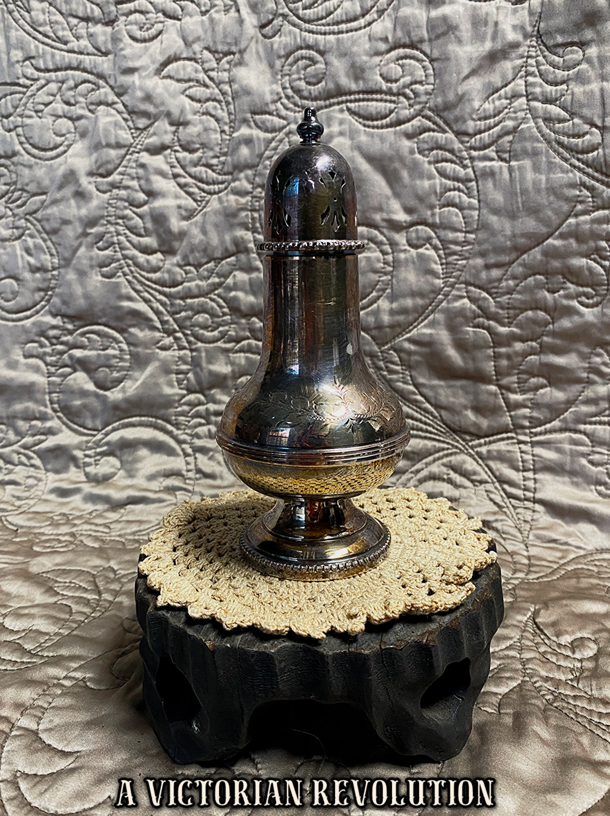 Antique Late Victorian Silver Plated Muffineer Sugar Caster - Engraved Shabby Chic Farmhouse Decor