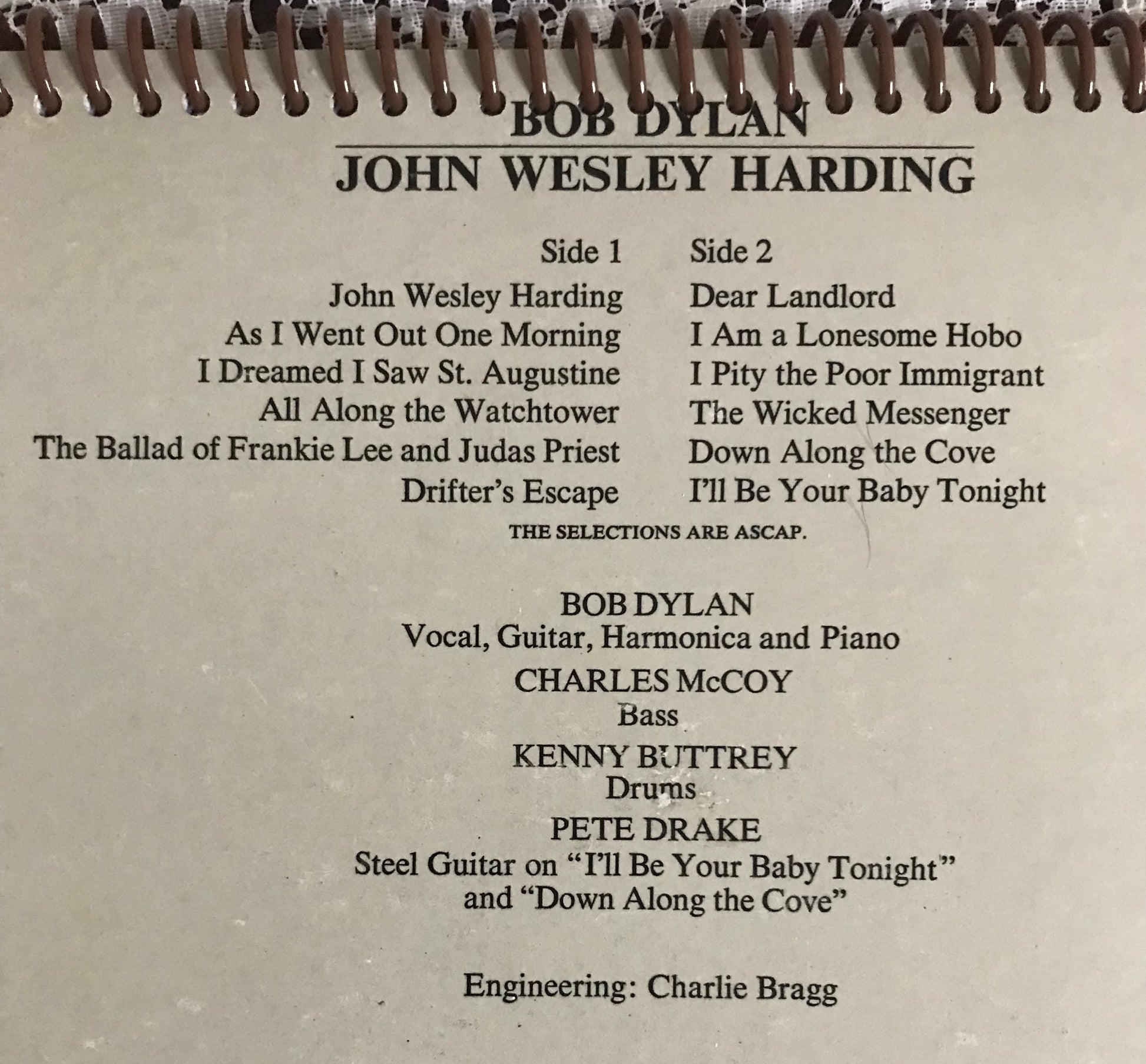 Bob Dylan John Wesley Harding Album Cover Notebook
