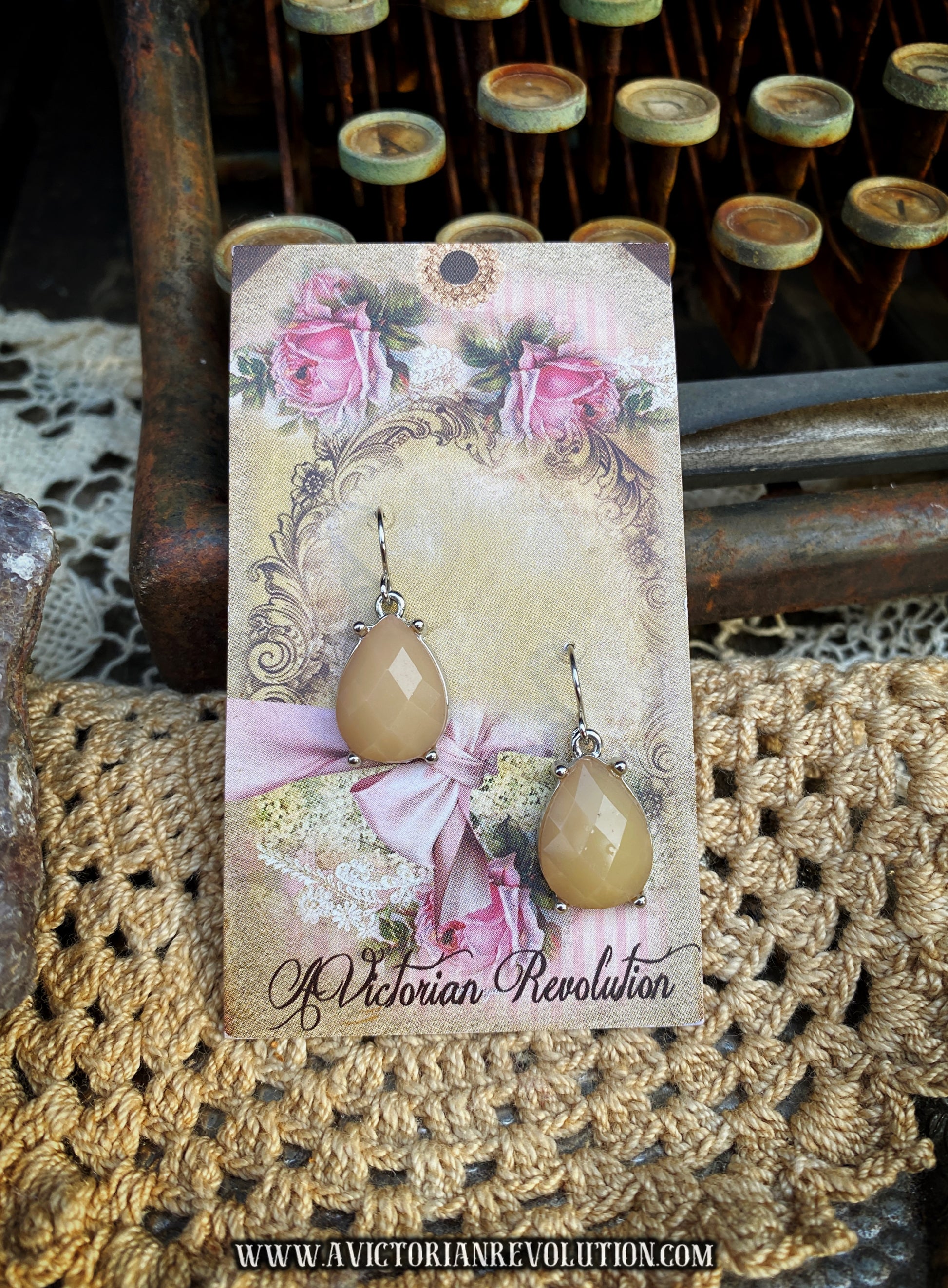 Faceted Honey Neutral Teardrop Dangle Earrings