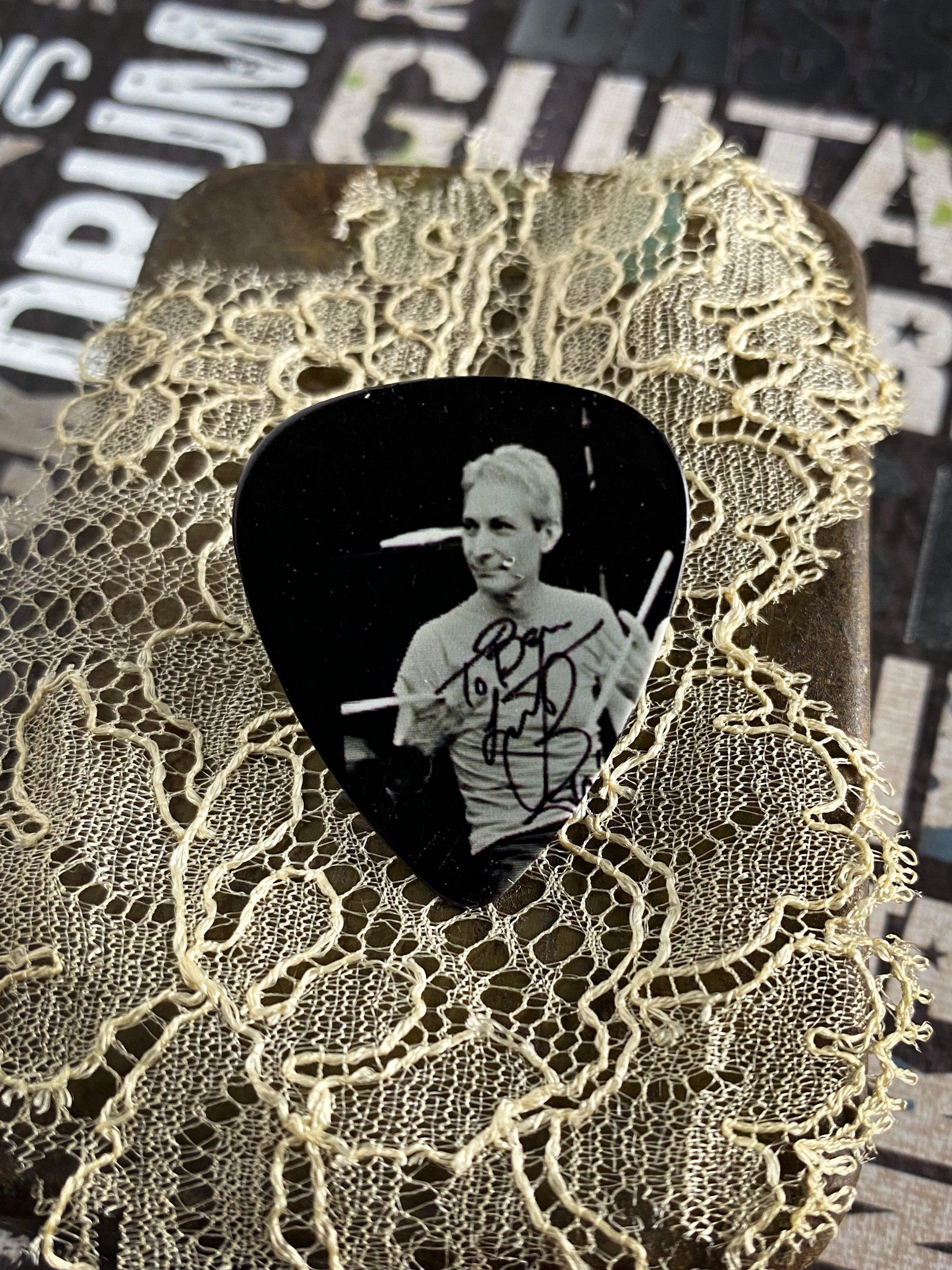 Guitar Pick Pin - Charlie Watts of the Rolling Stones