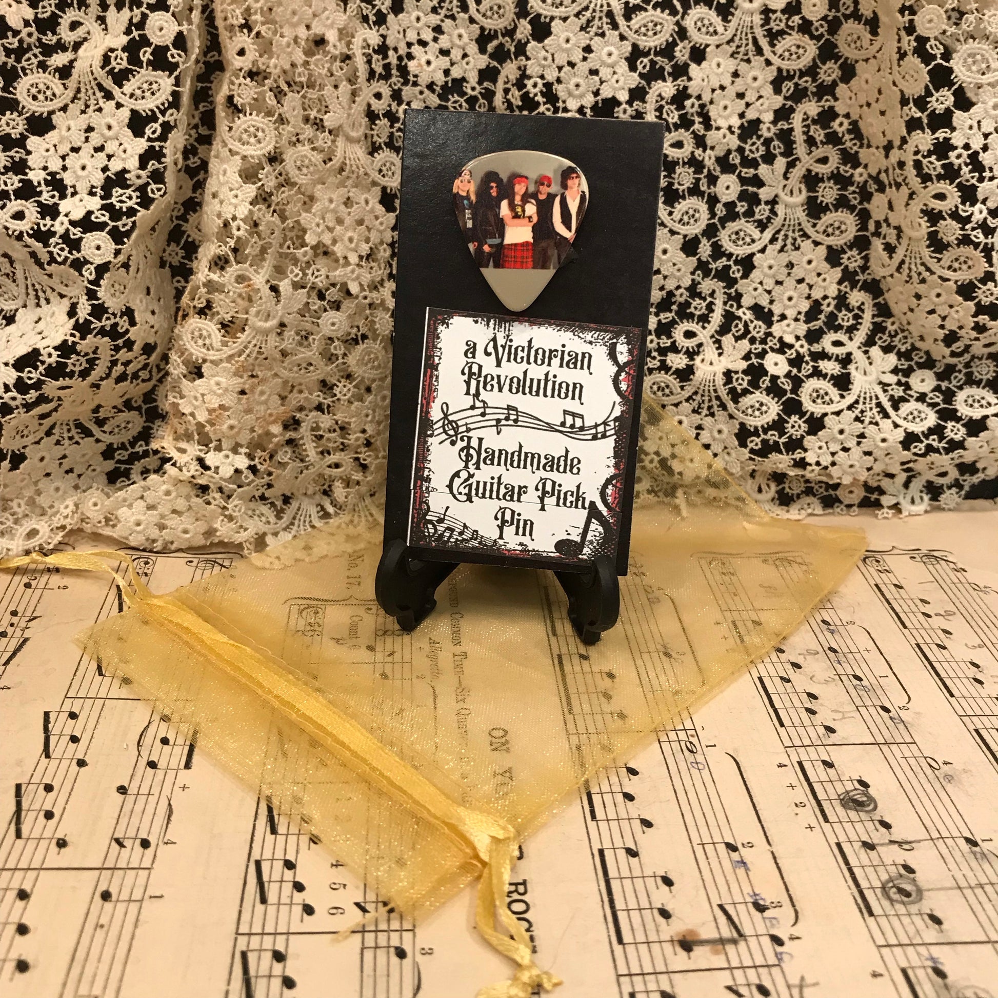 This guitar pick pin is handmade with love.