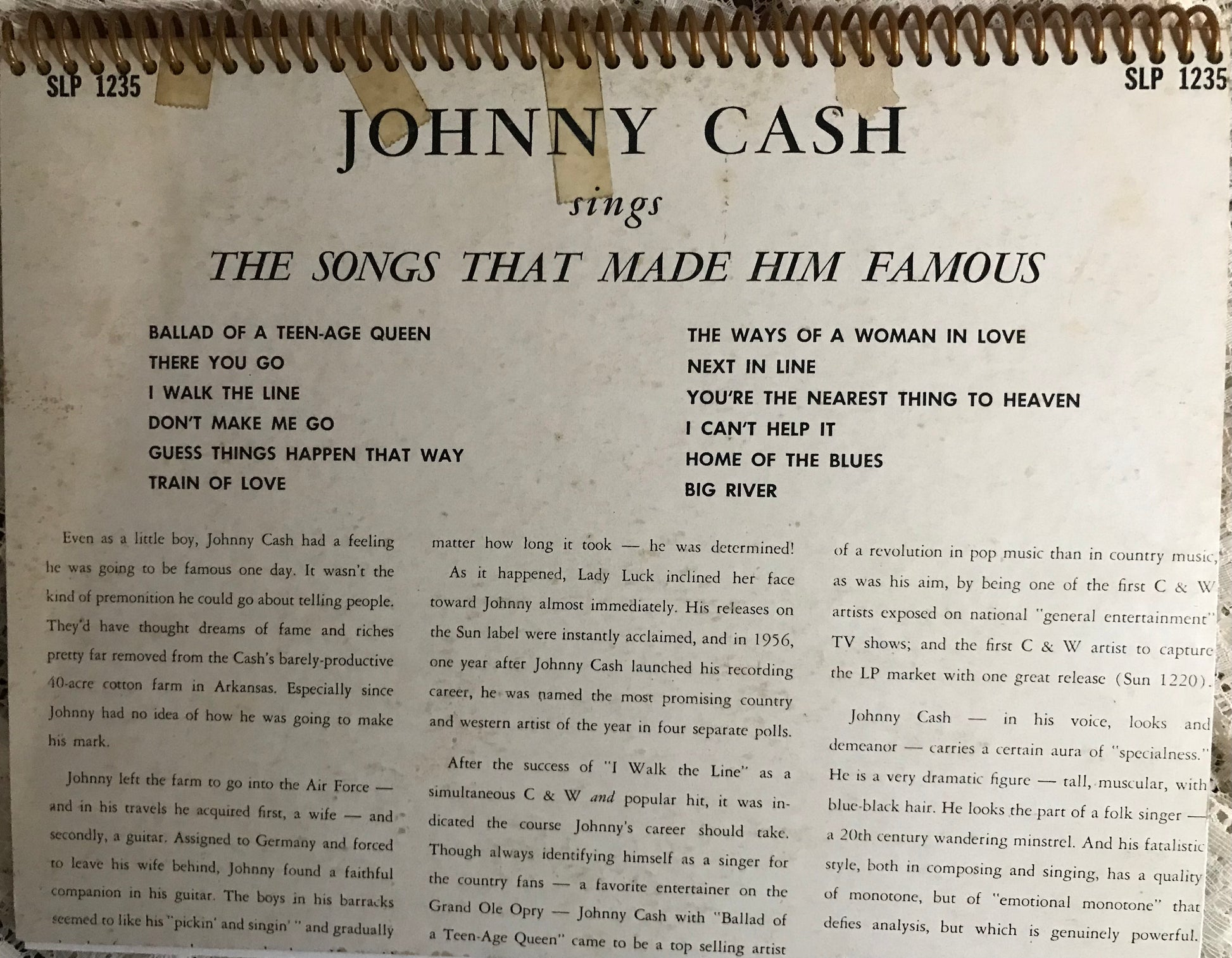 Johnny Cash The Songs That Made Him Famous Album Cover Notebook