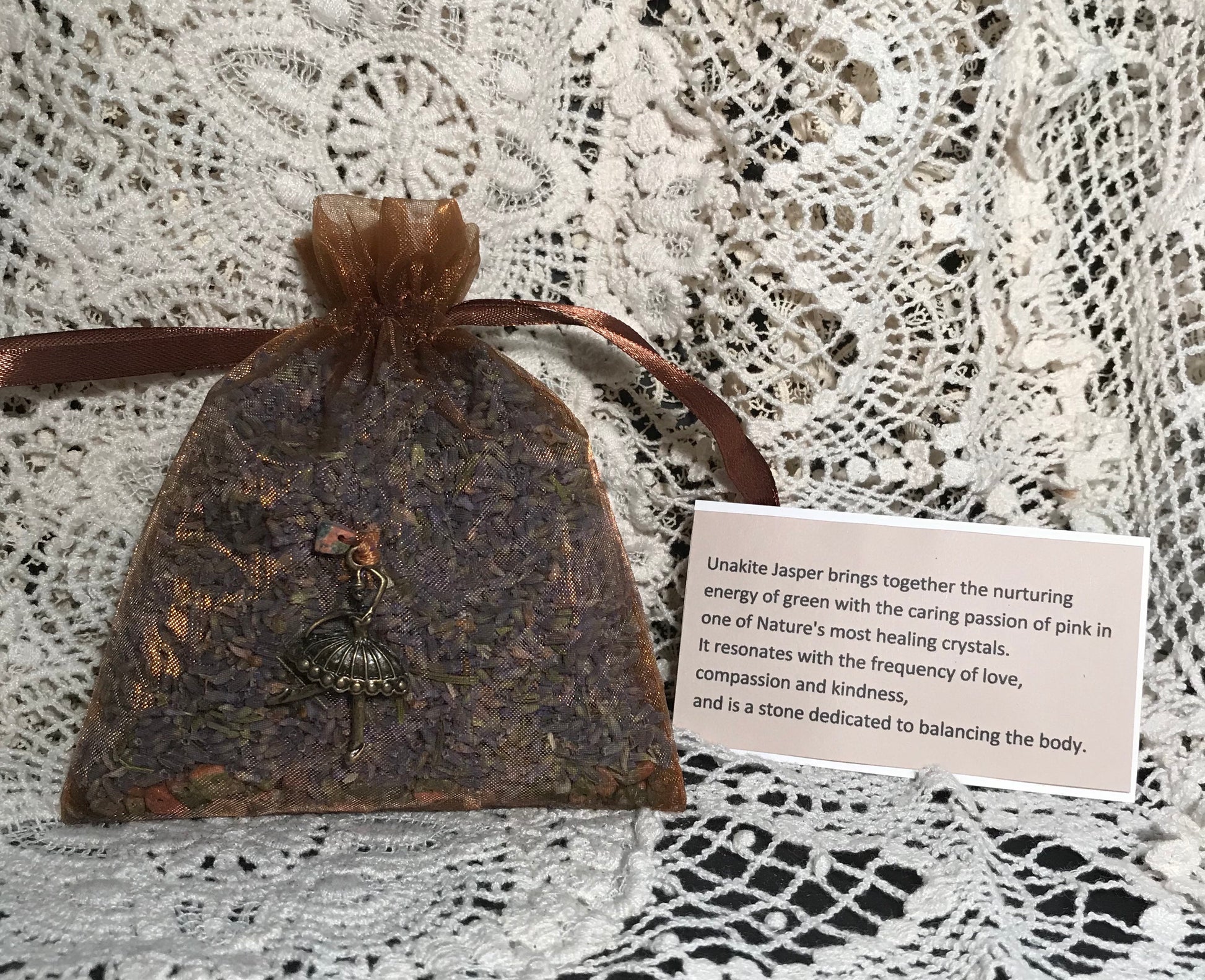 Organic Lavender & Gemstone Sachet with Unakite Jasper
