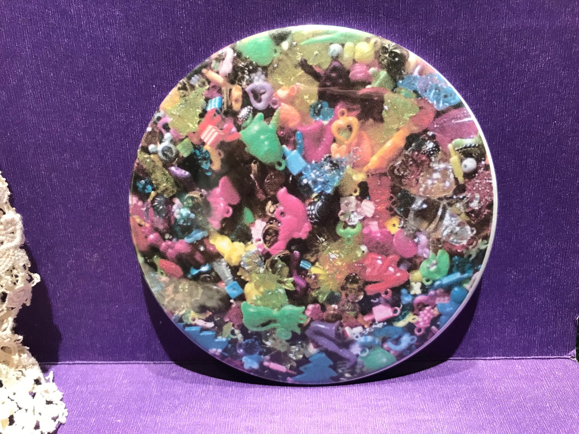 Materials: printed art, mylar, glass, metal