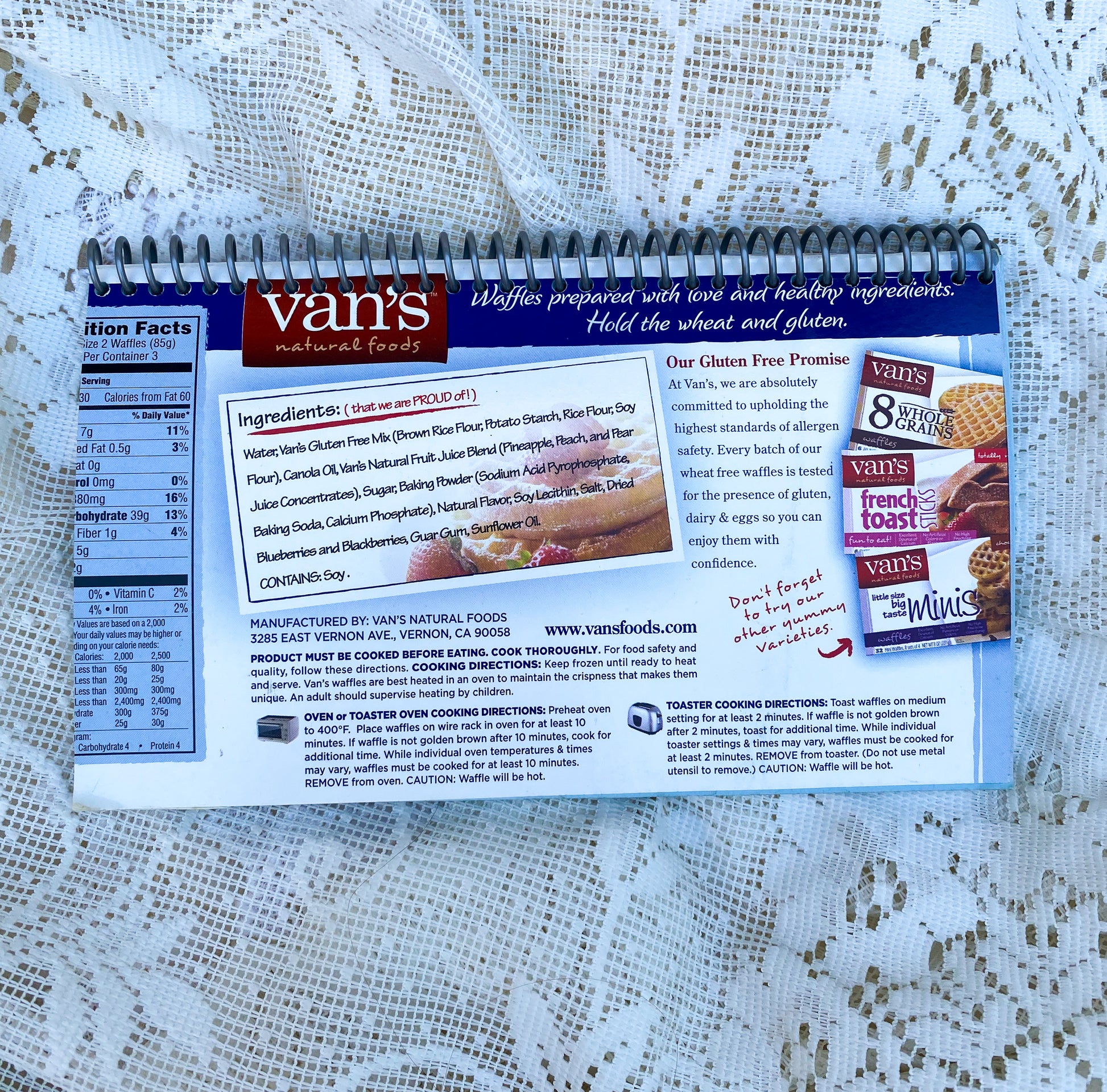 Van’s Gluten Free Blueberry Waffles Upcycled Spiral Notebook