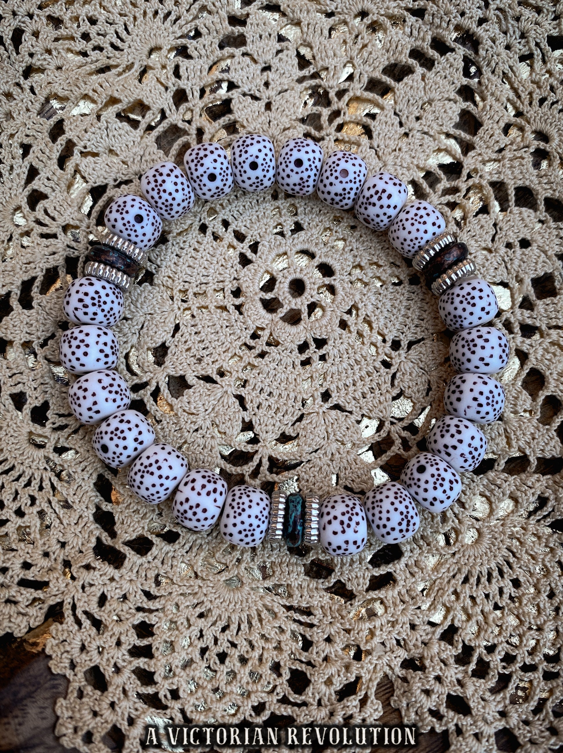 White Spotted Bead Bracelet - Modern Eclectic Style